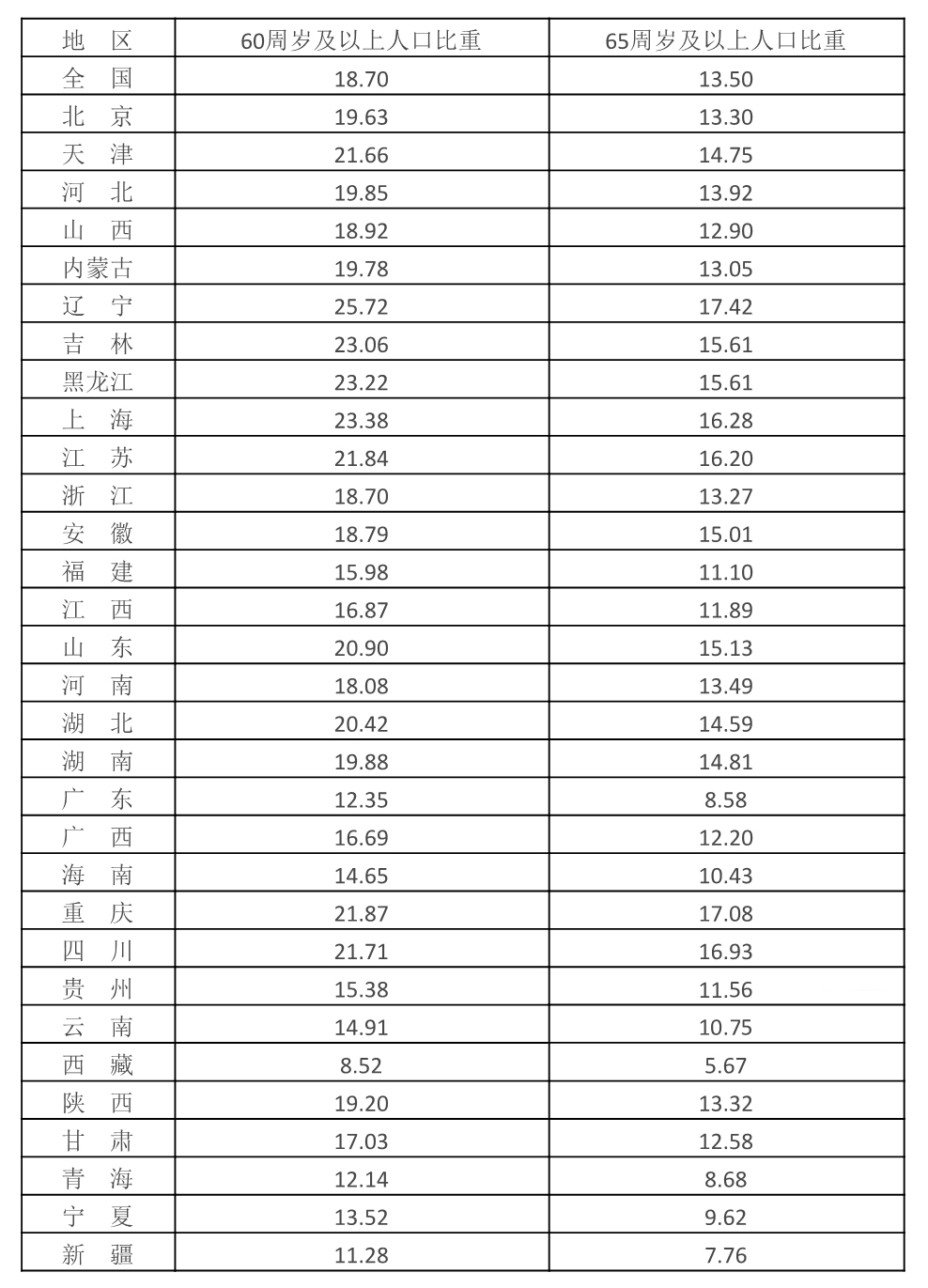 全国31个省份中,有16个省份的65周岁及以上老年人口超过了500万人,其中有6个省份的65周岁及以上老年人口超过了1000万人。